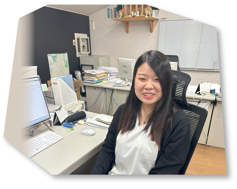 電話・来客対応、請求書・納品書の入力、確認作業、部品発注などをしています。